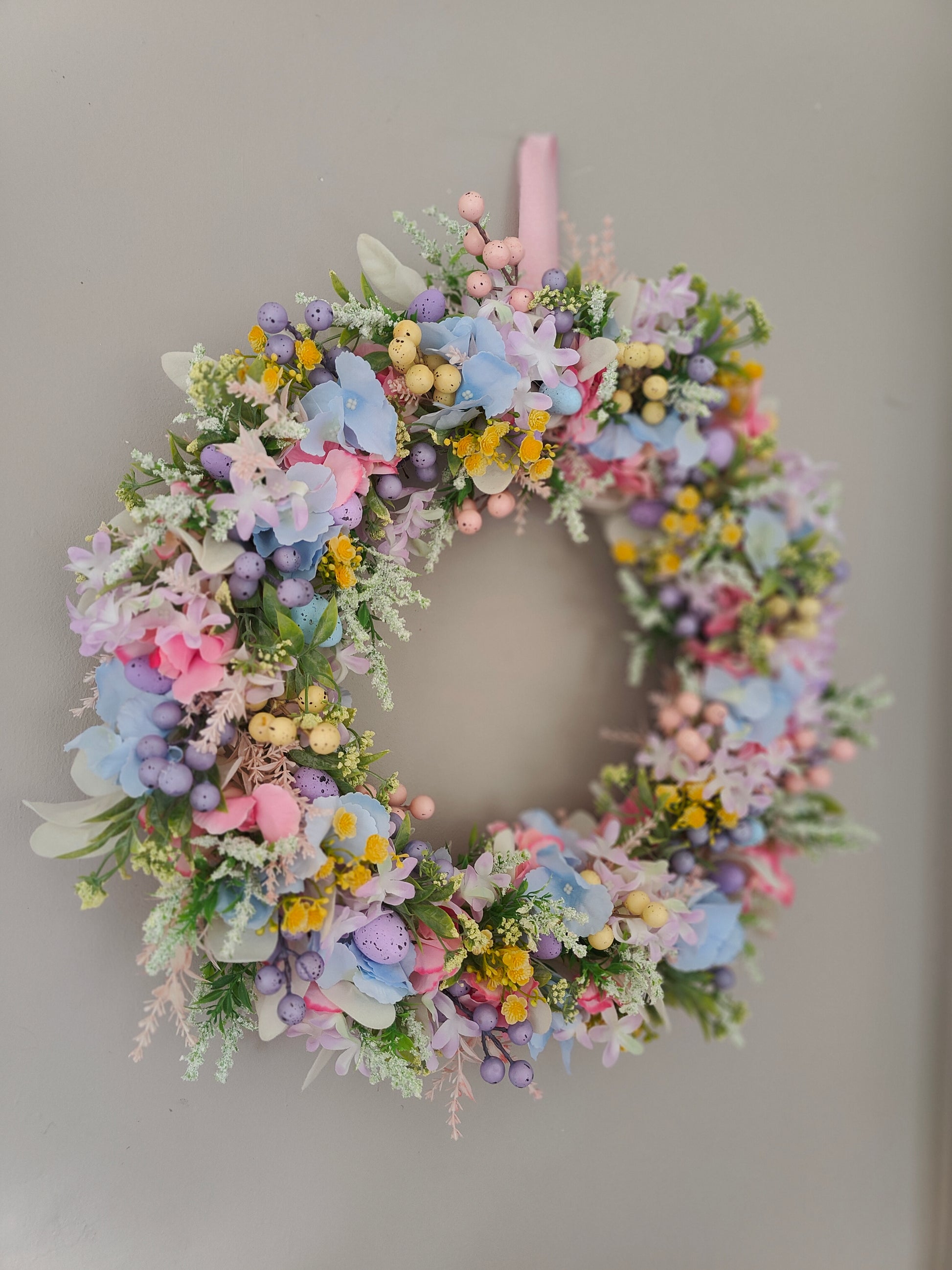 Easter wreath pastels Easter eggs mini pastel blue pink lilac lemon