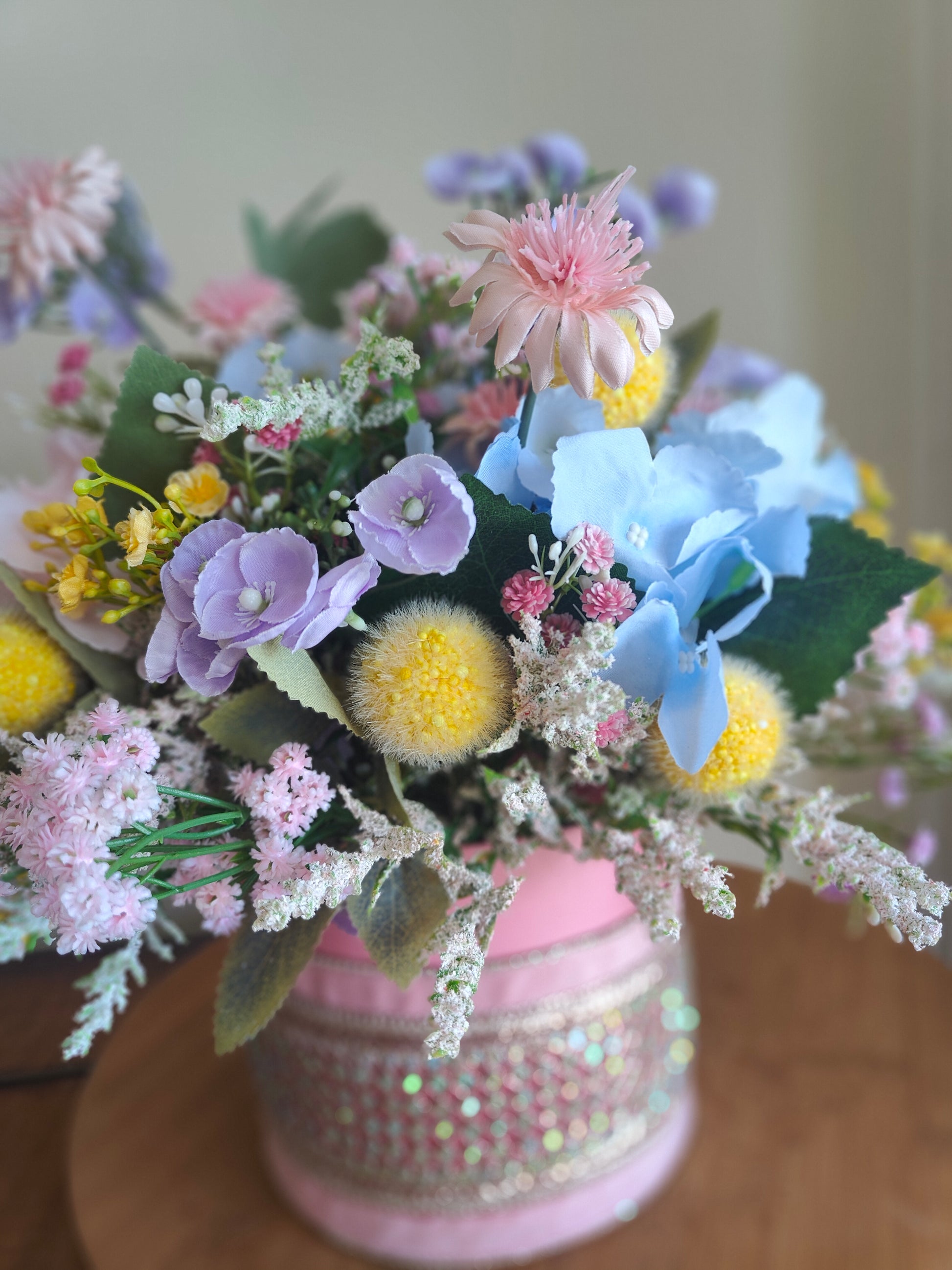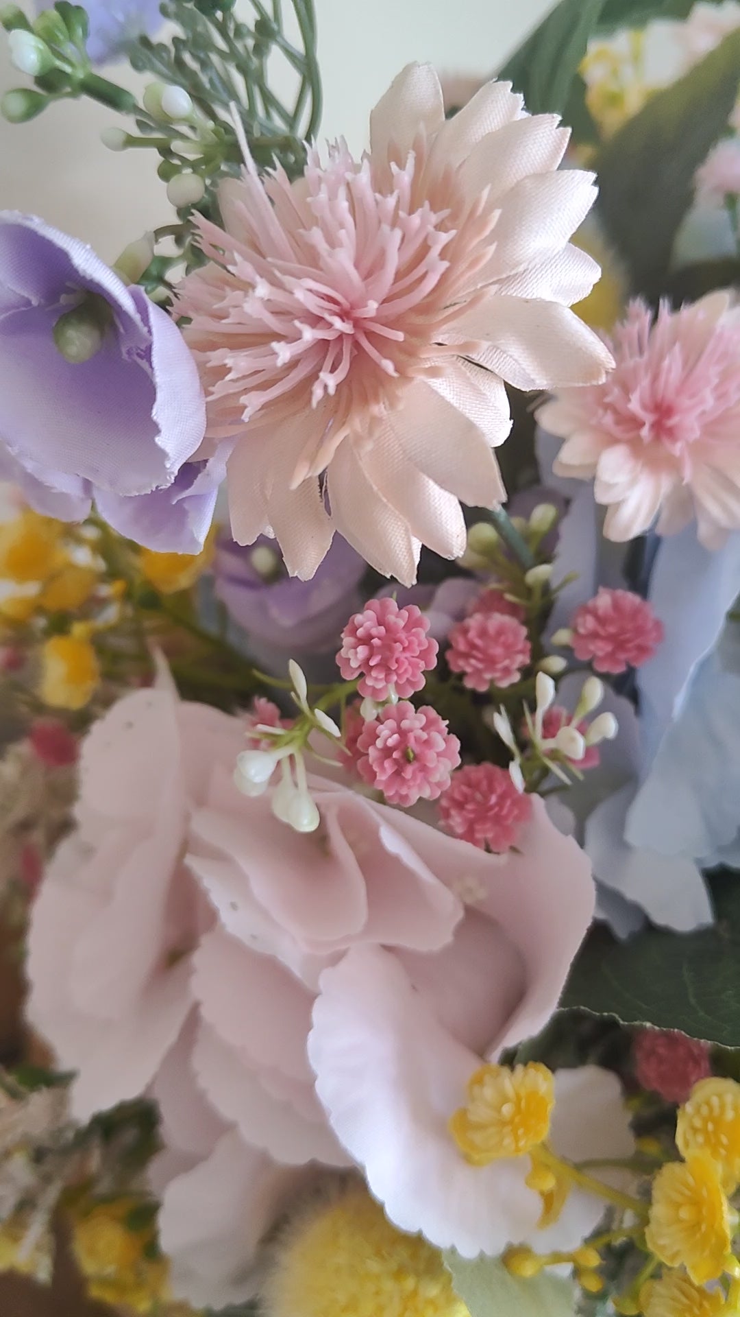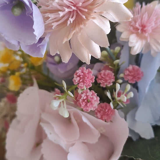 Pastel flowers artificial centrepiece box tablecentre decoration Easter Spring florals